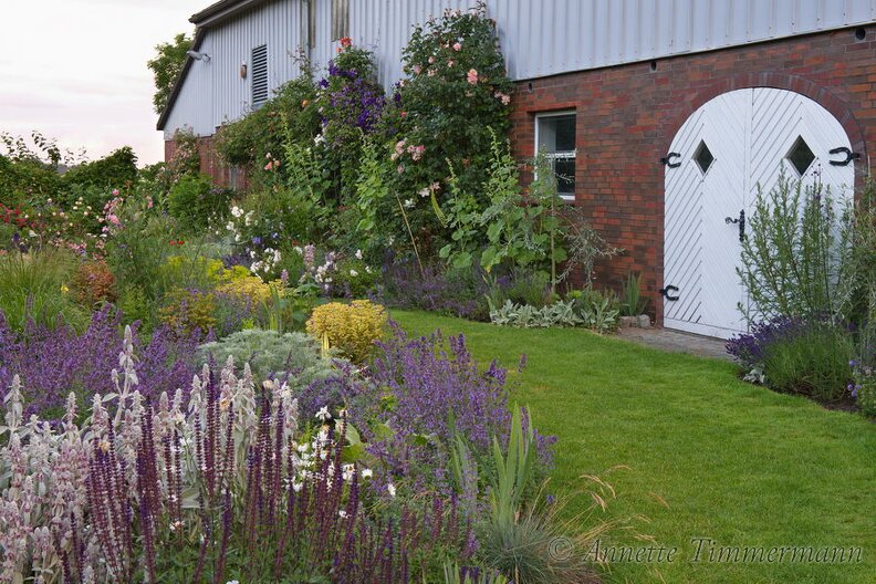 NepetaRose 'Schneewittchen'Salvia 'Caradonna'ScheuneStachys