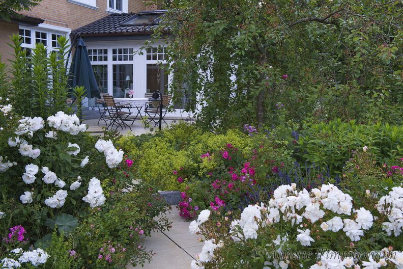 Rose 'Diamant'Rose 'Schneewittchen'Rose 'The Ferry'Terrasse