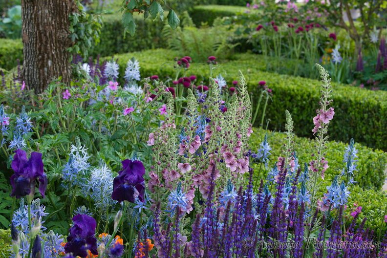 Aquilegia vulgarisBuxus sempervirensGeumIris