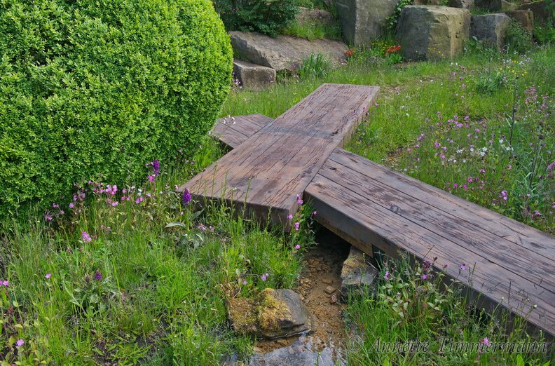 LattenzaunRodgersiaSesselStegTeich