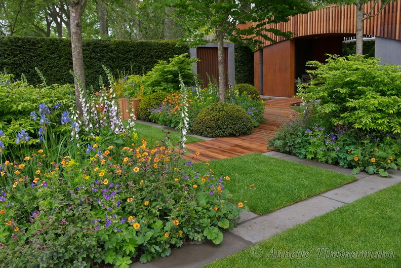 Digitalis purpureaGeranium phaeumGeranium sylvaticaGeumIris sibiricaRasen