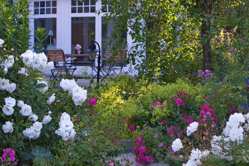 Rose 'Diamant'Rose 'Schneewittchen'TerrasseWintergarten