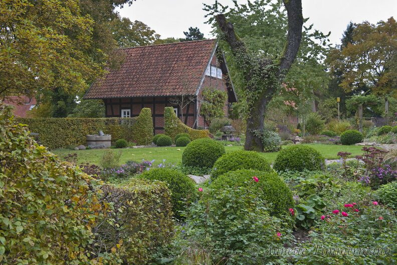 AcerBauerngartenBuchsFachwerkhausKugelbaumSedum