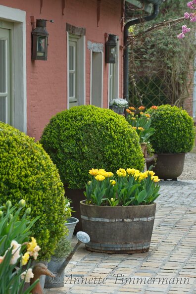 Birgit RousereBuchsbaumKübelPrunus serrula 'Kanzan'Zierkirsche