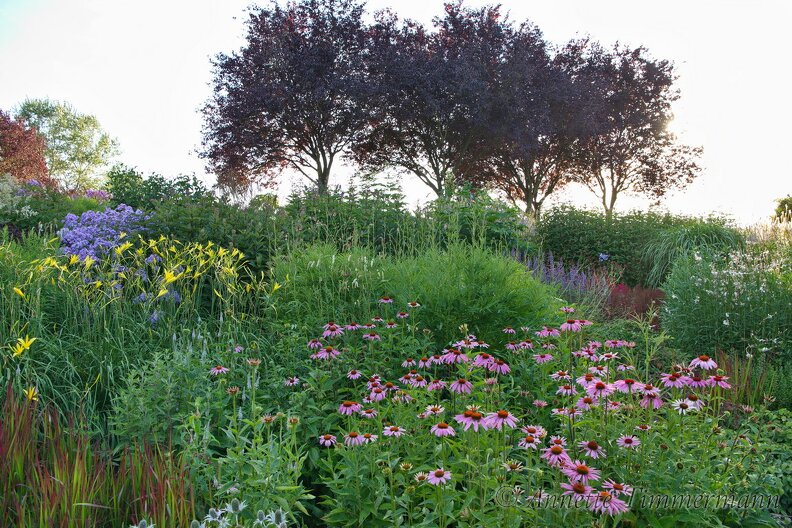 BlutpflaumeEchinacea purpureaEryngiumHemerocallis citrinaImperata cylindrica 'Red Baron'PräriegartenPrunus cerasifera 'Nigra'