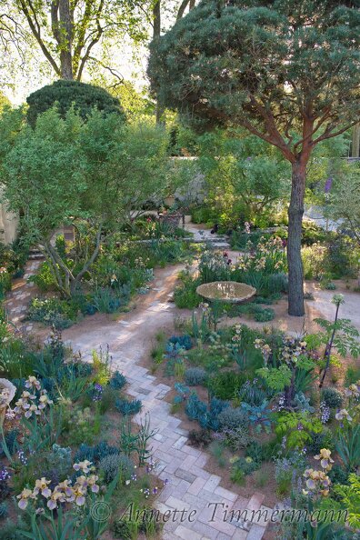 Aeonium arboreum 'Zwartkop'Elaeagnus umbellataIris 'Benton Caramel'Iris 'Benton Menace'Iris 'Benton Olive'Iris ‘Benton Susan'KlinkerPinus sylvestrisrecyclingSenecio mandraliscaeWasserschaleWeg