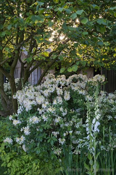 Anthriscus sylvestrisCorylus avellanaDigitalis purpurea f. albifloraEuphorbia schillingiiHaselIris sibirica 'White Swirl'Rhododendron luteum 'Daviesii'Wiesen-Kerbel