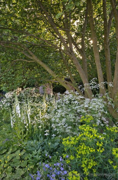 Anthriscus sylvestrisCorylus avellanaDigitalis purpurea f. albifloraEuphorbia schillingiiGeranium pratense 'Mrs Kendall Clark'HaselHerzblattwurzIris sibirica 'White Swirl'Rhododendron luteum 'Daviesii'Saruma henryiWiesen-Kerbel