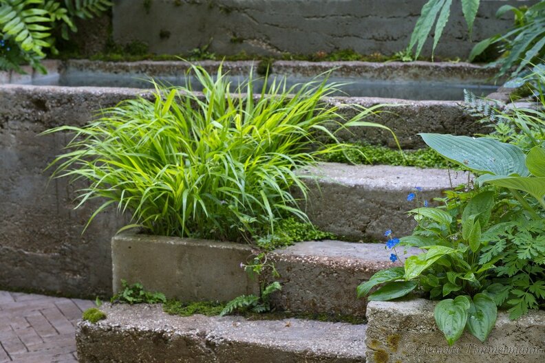 Brunnera macrophyllaFatsia polycarpaHostakleiner GartenMatteuccia struthiopterisrecyclingSchattenStufenTiarella 'Spring Symphony'WasserbeckenWasserrinne