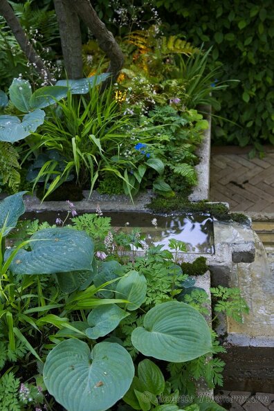 Brunnera macrophyllaDryopteris erythrosoraHakonechloa macraHostakleiner GartenrecyclingSchattenTiarella 'Spring Symphony'WasserbeckenWasserrinne