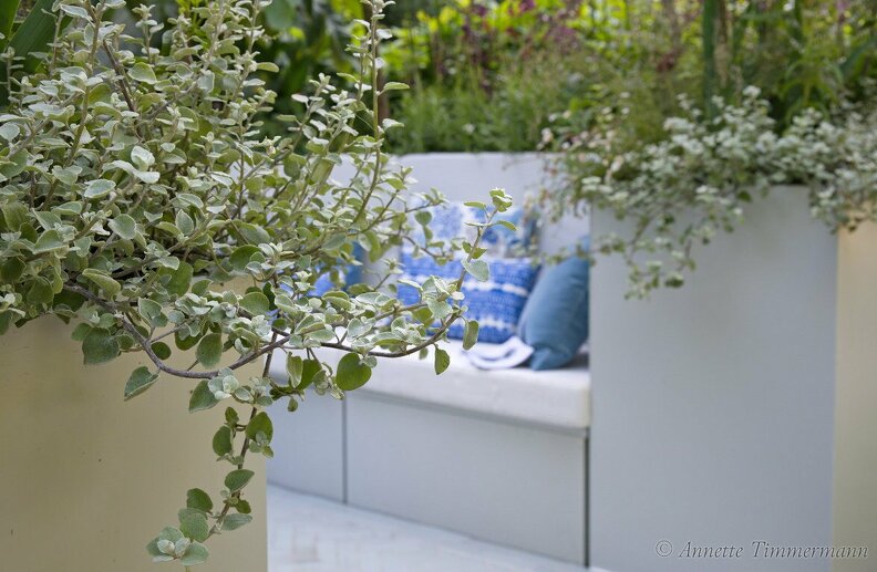 Aloysia triphyllablauErigeron ‘Profusion’Helichrysum petiolarekleiner GartensilberSitzplatzweiss