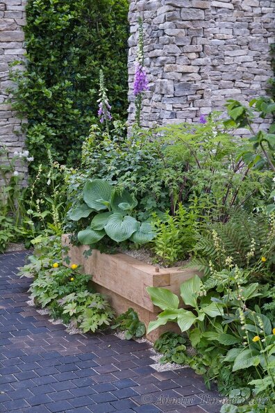 Acer campestreAmur-KorkbaumCortenstahlgedeckter TischNatursteinPergolaPhellodendron amurenseSamtbaumSandsteinSitzplatzTerrasseVerbascum nigrum 'Album'