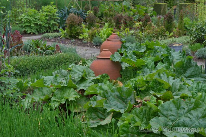 BeeteinfassungBohnenGemüseGemüsegartenKräuterRhabarbertöpfeSalatSchnittknoblauch