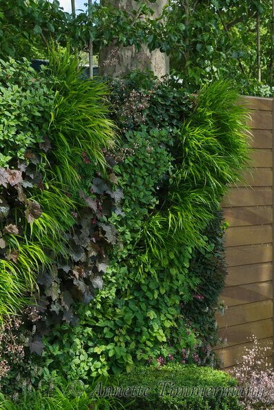 BuchsbaumGitterrosthängender GartenHaustürHederaHeucheraKiesmodernPflanzenwandTürvertikaler GartenVorgarten